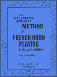 An Illustrated Advanced Method for French Horn Playing, by William C. Robinson; edited by Philip Farkas This method is intended as a guide for advanced students of the horn with materials included to help students establish a good direction in their efforts and also to serve as a helpful guide in the avoidance or correction of faulty fundamental playing habits. |